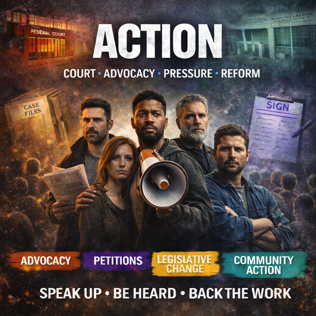 Court action, advocacy, petitions, and reform — all in one place.