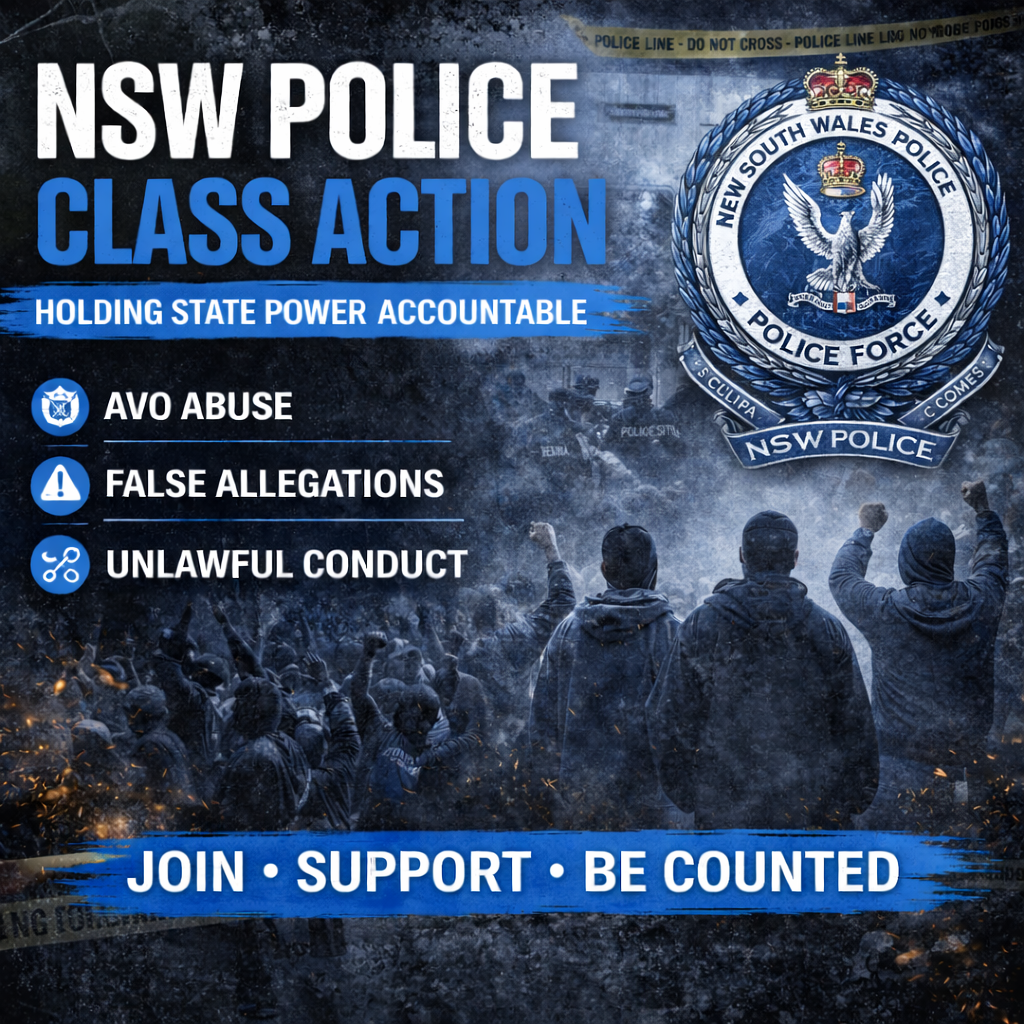 A class action focused on policing failures, including AVO misuse, false allegations, and unlawful conduct.